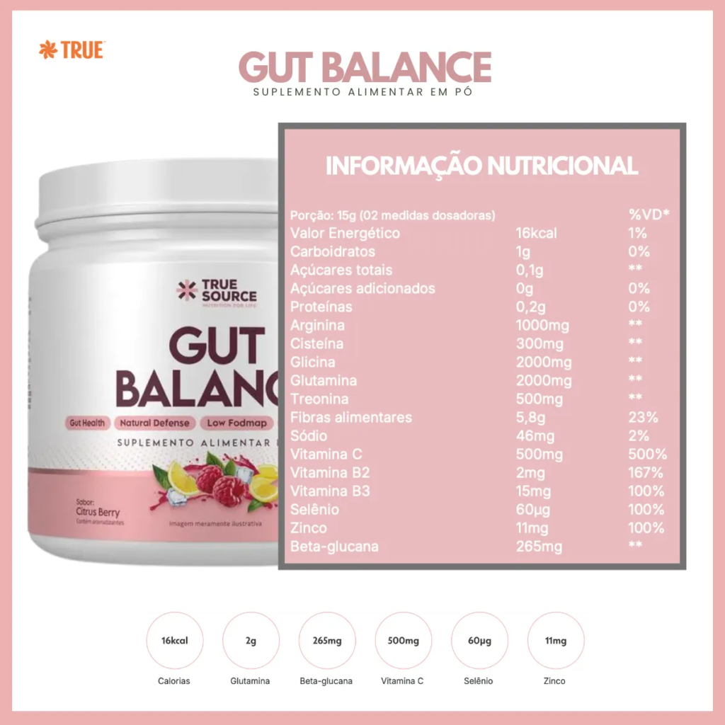 O conceito de Gut Balance refere-se ao equilíbrio ideal da microbiota intestinal, essencial para a saúde digestiva e bem-estar geral. Uma microbiota intestinal saudável tem um papel crucial, influenciando a imunidade, metabolismo e até o humor. A suplementação com beta glucana, como a encontrada no produto True Source, pode desempenhar um papel importante na promoção desse equilíbrio.